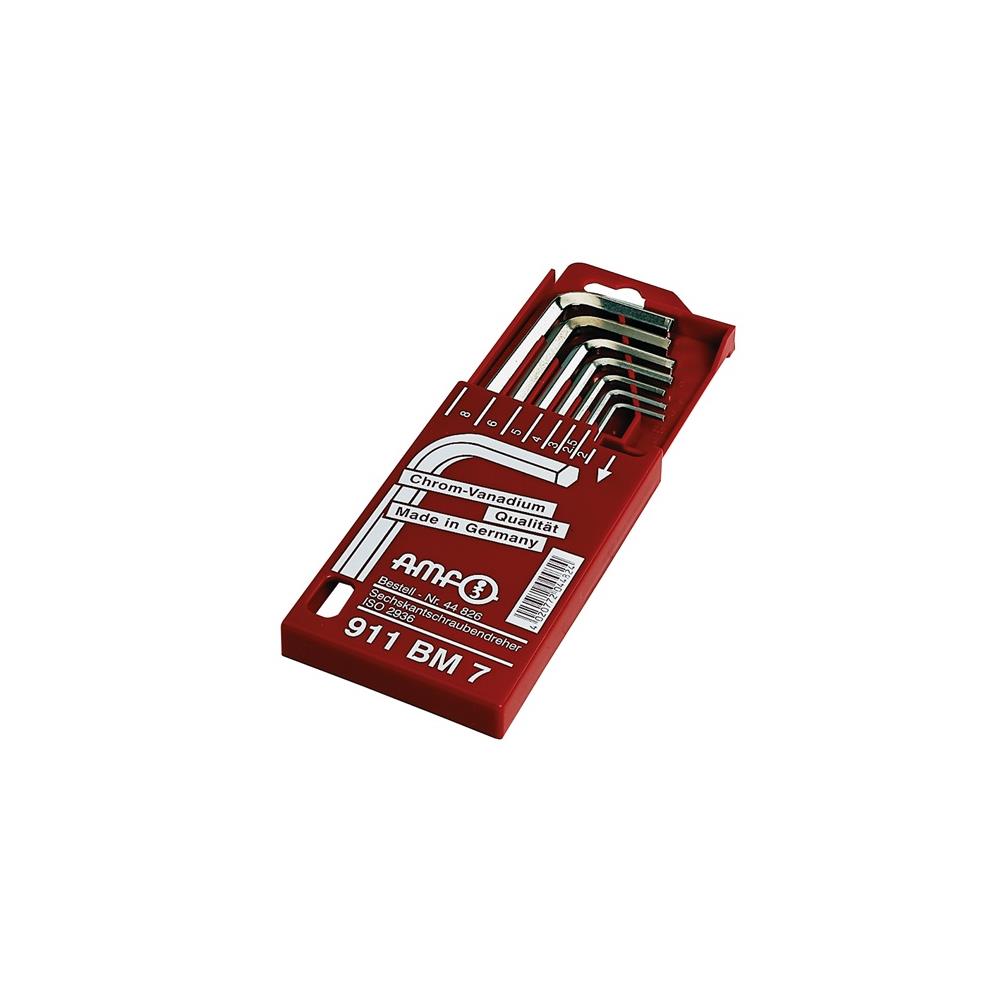 AMF Allen key set 911BM 7-part slide-out case AF 2-8 mm short CV steel