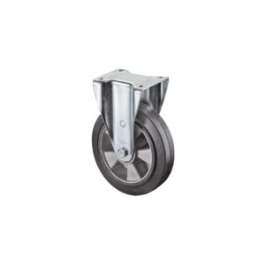 – Elastic solid rubber tyres (black, firmly cured-on on aluminium wheel body