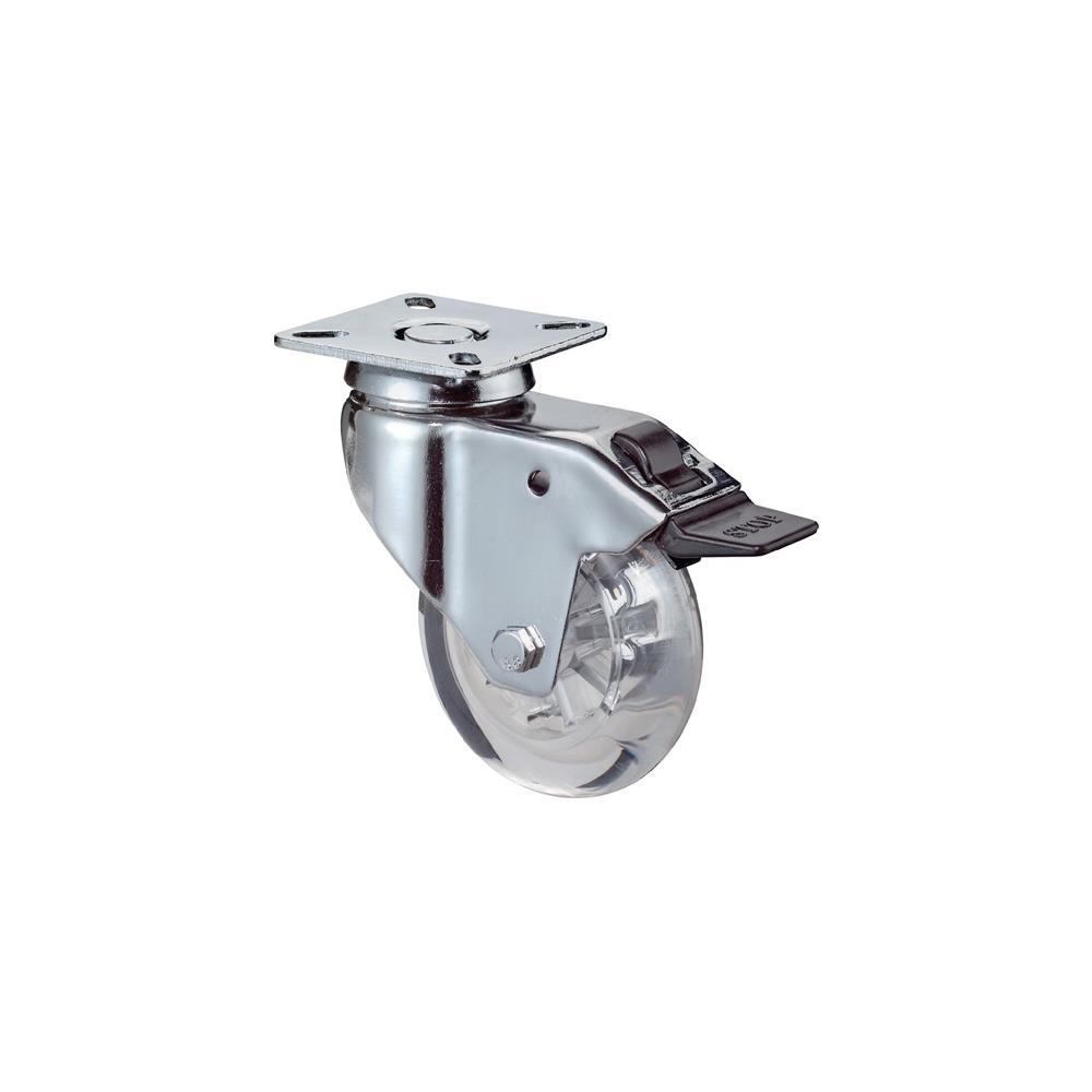 1,00 ST Swivel castor with brake wheel dm 50 mm load cap. 40 kg with screw-on plate friction bearings plastic, transparent