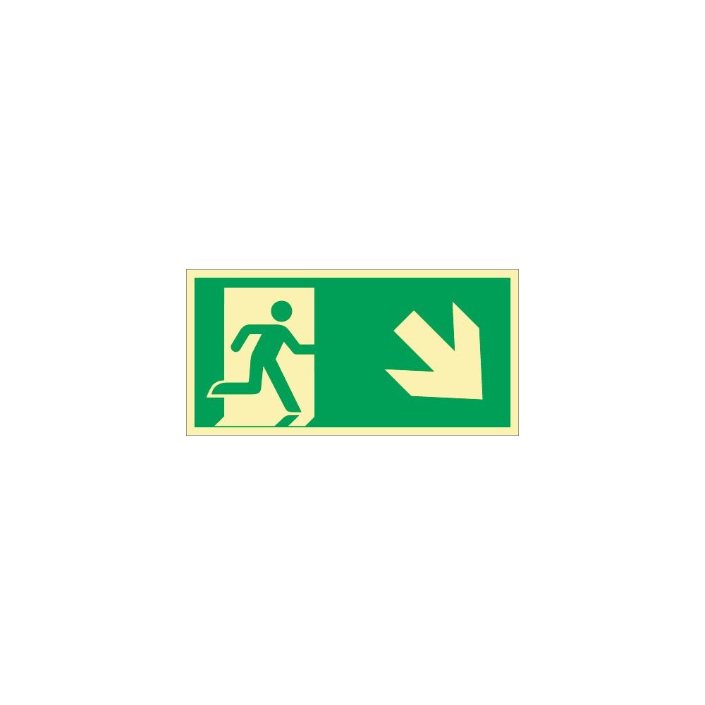 Emergency sign DIN EN ISO 7010 L297xW148 mm emergency exit route, right downwards plastic