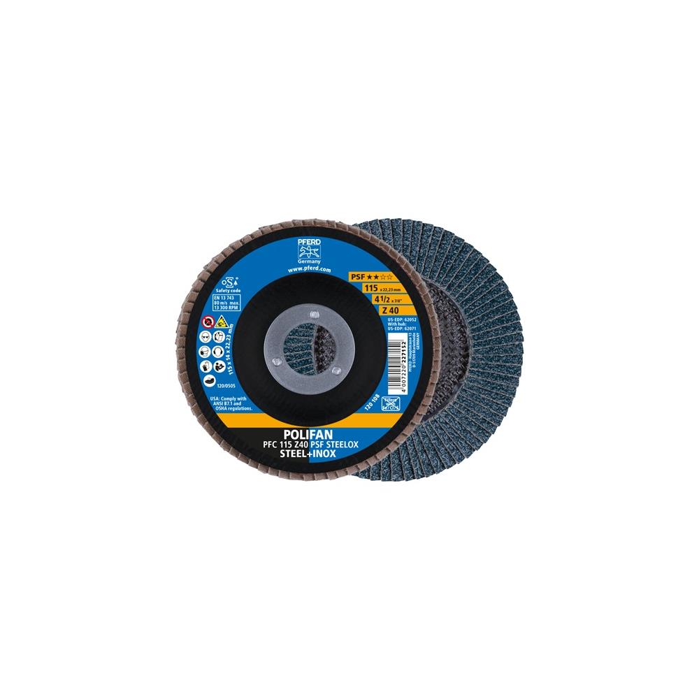 PFERD Fan-type disc POLIFAN Z PSF STEELOX dm 115 mm granulation Z-40 conical stain. steel zirconium corundum