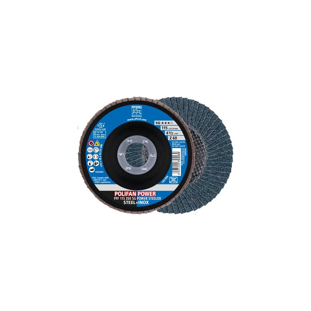 PFERD Fan-type disc POLIFAN Z SG POWER STEELOX dm 115 mm granulation Z-60 flat stain. steel zirconium corundum