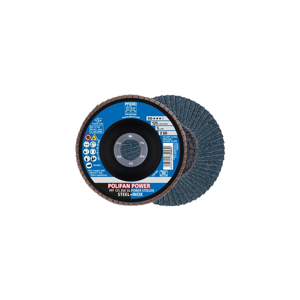 PFERD Fan-type disc POLIFAN Z SG POWER STEELOX dm 125 mm granulation Z-60 flat stain. steel zirconium corundum
