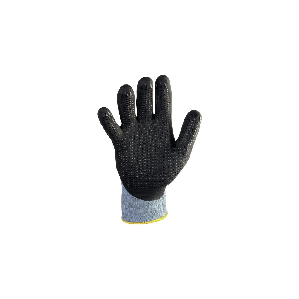 – Palm and fingertips with black nitrile microfoam coating