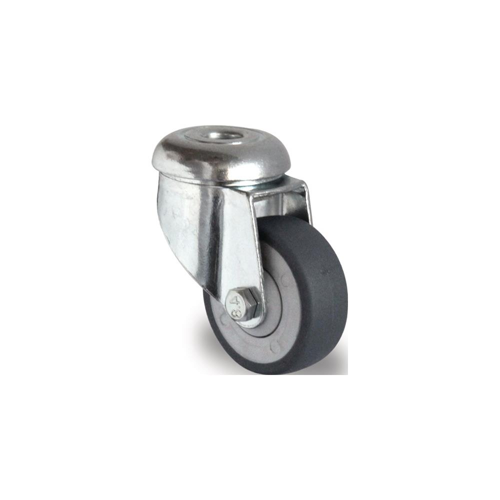 Swivel castor wheel dm 100 mm load cap. 100 kg with bolt hole ball bearings rubber grey