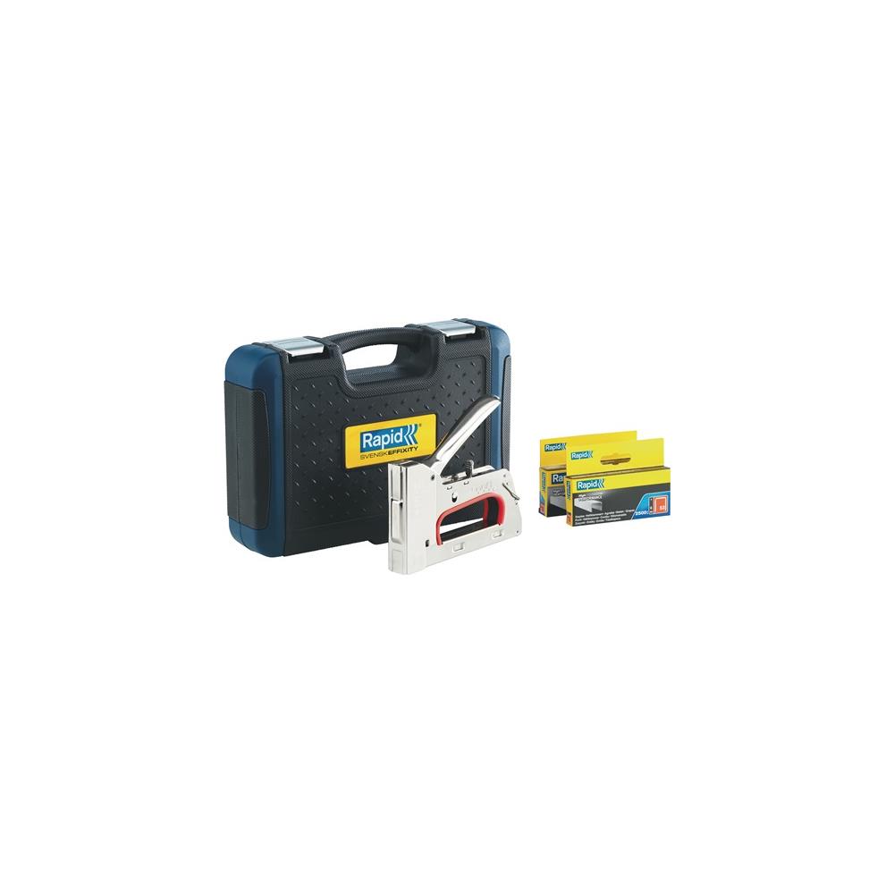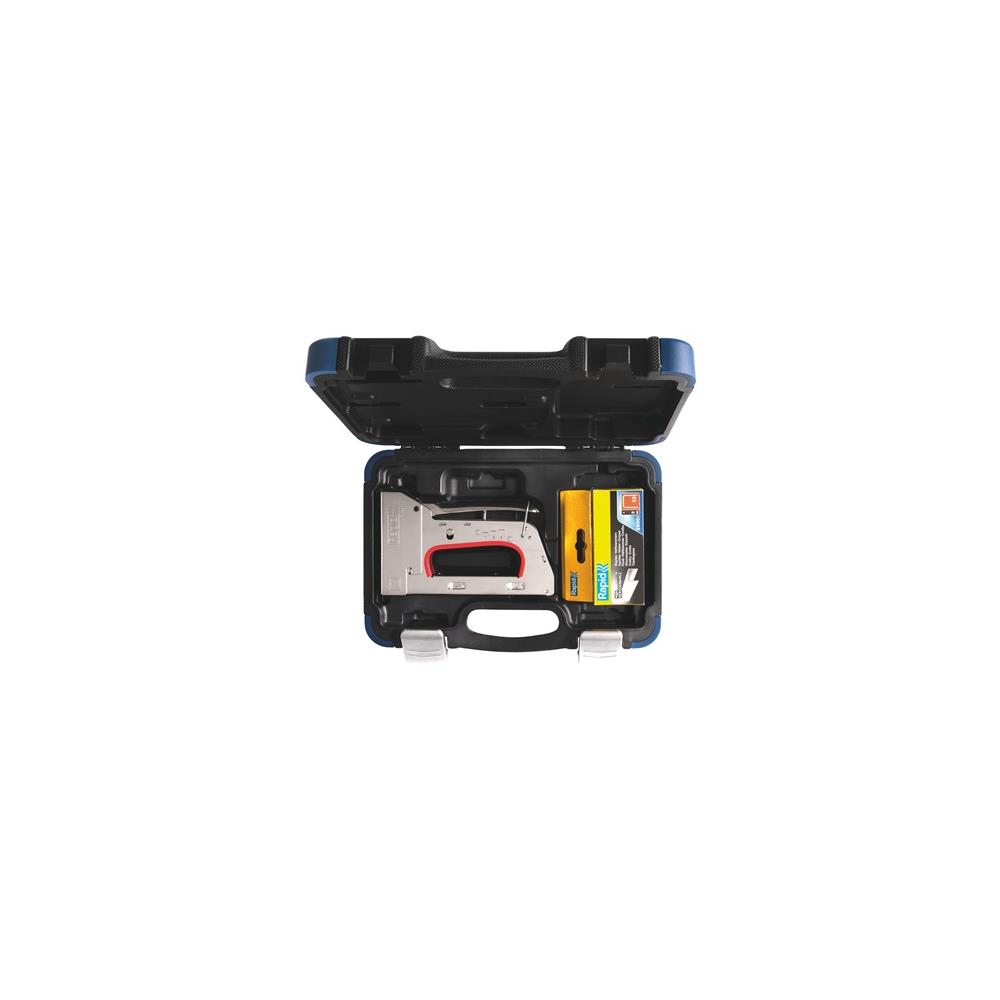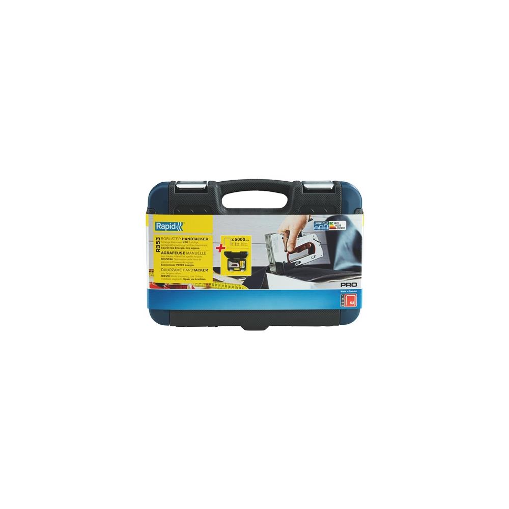 – Length/type of clamp up to: 6-14 mm type 53 Scope of supply: Hand tacker R353, incl. 5,000 clips (2,500 pc. – 53/6 mm, 2,500 pc. – 53/8 mm in high-quality plastic case