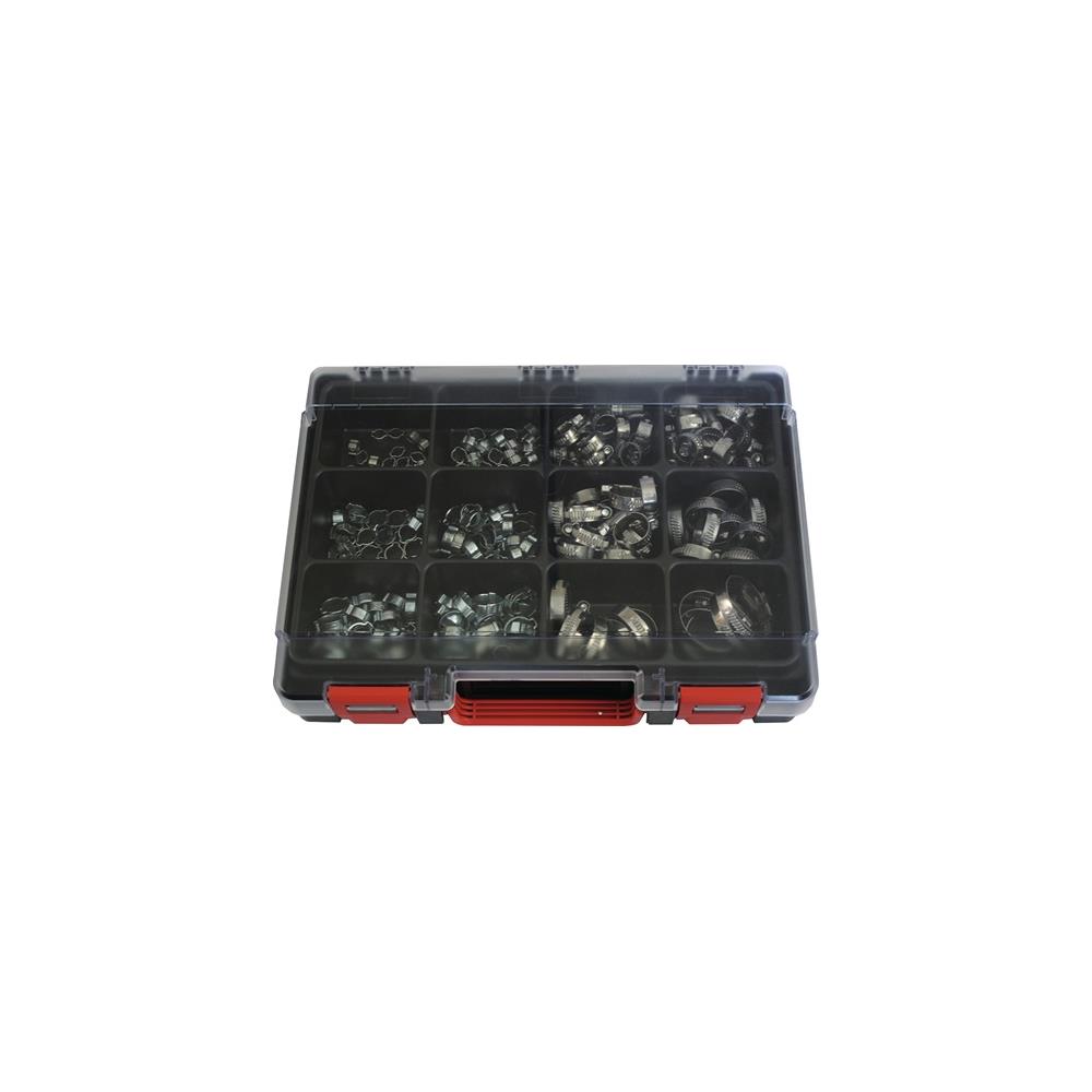 Assortment of hose clips in plastic assortment box 175 x 2 ear clips 82 hose clips