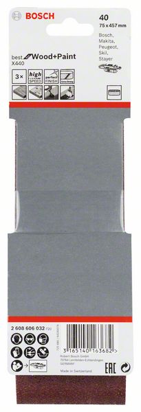 Robert Bosch Power Tools GmbH 3-piece X440 sanding belt set. For belt sanders