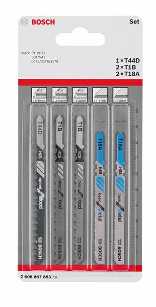 Robert Bosch Power Tools GmbH 5-piece T-Shank jigsaw blade set Wood and Metal. For jigsaws