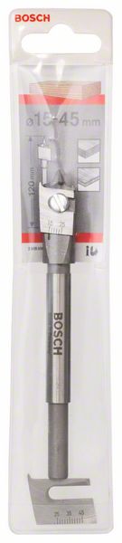 The Adjustable Spade Bit delivers flexibility when drilling. Its spade bit features a wedge-type blade with a lock and slow-feed screw point that can be adjusted from 15-45 mm. This spade bit is ideal for general purpose boring where a variety of larger size holes are required. It works with medium-hard and soft woods as well as with light building materials and wood panels. Additionally, the bit is made of tempered steel and has a centring tip for precise drilling.