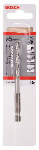 5 ST Brad point drill bit, 1/4" hex shank. For rotary drills/drivers