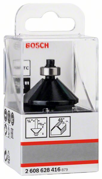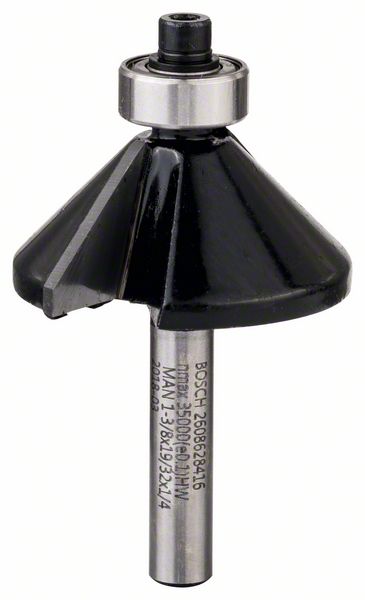 Robert Bosch Power Tools GmbH Chamfer bit, 1/4″, D1 34.9 mm, B 13 mm, L 14.7 mm, G 56 mm, 45°. For hand-held routers