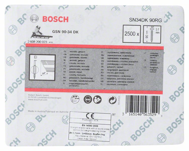 Robert Bosch Power Tools GmbH Clipped head strip nail SN34DK 90RG. For nail guns