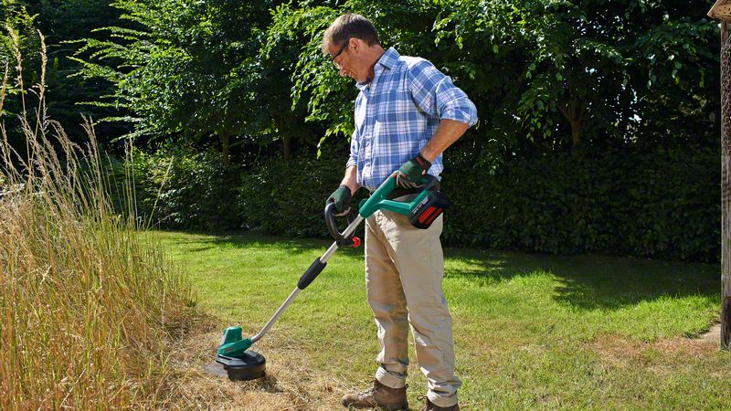 Cordless grass trimmer AdvancedGrassCut 36, For powerful cutting – with cordless freedom in overgrown areas, Dual-line cutting system for efficient cutting and high-quality results, Hassle-free, semi-auto spool eliminates the need for manual adjustments, Switch between trimming and edging mode in just one click with rotatable head, Cutting grass, overgrown areas, untouched lawns, and garden edging, Plant protector for precise and gentle trimming around plants, 1 x battery 36V 2.0Ah, 6 m line spool (F 016 800 351), Charger AL 36V-20, Carton