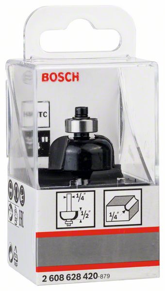 Robert Bosch Power Tools GmbH Cove bit, 1/4″, R1 6.3 mm, D 25.4 mm, L 12.7 mm, G 54 mm. For hand-held routers