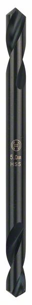 The HSS Double-Ended Drill Bit Ground delivers double the drilling lifetime. The bit is usable at both ends due to two drill bit tips and flutes. It is ideally suited for assembly work, car body work and metal machining. It can also be used for drilling rivets or thread holes in thin-walled materials. Use this bit when drilling non-ferrous metal, sheet steel and plastics. Additionally, the bit is extra short and stable for drilling in confined spaces. Active cutting and perfect centring without wandering are achieved by the pointed split-point tip, making pre-punching unnecessary.