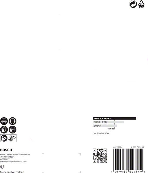 Performance Claim Text: Up to 2x faster than Bosch C420 Sandpaper