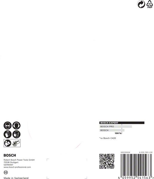 Fast Sanding of Paint and Wood! Grain alignment during production ensures aggressive cut. Sanding large surfaces is a time-consuming job: Frustratingly, many sandpapers rapidly clog with dust and lose their abrasiveness, making a long process even longer. By combining sharp grains and anti-clogging technology, the EXPERT C470 Sandpaper maintains its exceptional capabilities throughout. This means you can work faster, for longer, without compromising on the finish. Spend less time sanding – or get more work done – with the Bosch EXPERT C470 Sandpaper. Exceptional abrasion with Bosch Surface Structure.