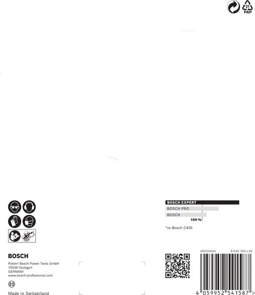 Fast Sanding of Paint and Wood! Grain alignment during production ensures aggressive cut. Sanding large surfaces is a time-consuming job: Frustratingly, many sandpapers rapidly clog with dust and lose their abrasiveness, making a long process even longer. By combining sharp grains and anti-clogging technology, the EXPERT C470 Sandpaper maintains its exceptional capabilities throughout. This means you can work faster, for longer, without compromising on the finish. Spend less time sanding – or get more work done – with the Bosch EXPERT C470 Sandpaper. Exceptional abrasion with Bosch Surface Structure.