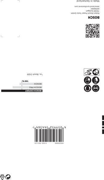 Fast Sanding of Paint and Wood! Grain alignment during production ensures aggressive cut. Sanding large surfaces is a time-consuming job: Frustratingly, many sandpapers rapidly clog with dust and lose their abrasiveness, making a long process even longer. By combining sharp grains and anti-clogging technology, the EXPERT C470 Sandpaper maintains its exceptional capabilities throughout. This means you can work faster, for longer, without compromising on the finish. Spend less time sanding – or get more work done – with the Bosch EXPERT C470 Sandpaper. Exceptional abrasion with Bosch Surface Structure.