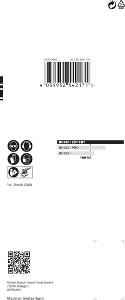 Fast Sanding of Paint and Wood! Grain alignment during production ensures aggressive cut. Sanding large surfaces is a time-consuming job: Frustratingly, many sandpapers rapidly clog with dust and lose their abrasiveness, making a long process even longer. By combining sharp grains and anti-clogging technology, the EXPERT C470 Sandpaper maintains its exceptional capabilities throughout. This means you can work faster, for longer, without compromising on the finish. Spend less time sanding – or get more work done – with the Bosch EXPERT C470 Sandpaper. Exceptional abrasion with Bosch Surface Structure.