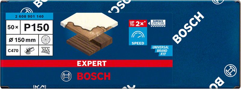 Fast Sanding of Paint and Wood! Grain alignment during production ensures aggressive cut. Sanding large surfaces is a time-consuming job: Frustratingly, many sandpapers rapidly clog with dust and lose their abrasiveness, making a long process even longer. By combining sharp grains and anti-clogging technology, the EXPERT C470 Sandpaper maintains its exceptional capabilities throughout. This means you can work faster, for longer, without compromising on the finish. Spend less time sanding – or get more work done – with the Bosch EXPERT C470 Sandpaper. Exceptional abrasion with Bosch Surface Structure.