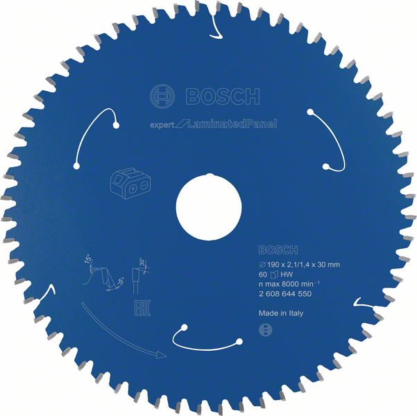 Robert Bosch Power Tools GmbH Expert for Laminated Panel Circular Saw Blade for Cordless Saws 190×2.1/1.4×30 T60. For hand-held circular saws