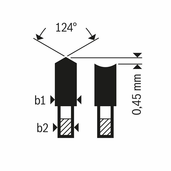 Width of cut (b1) mm / Base bl. thickness (b2) mm: 3.2/2.2