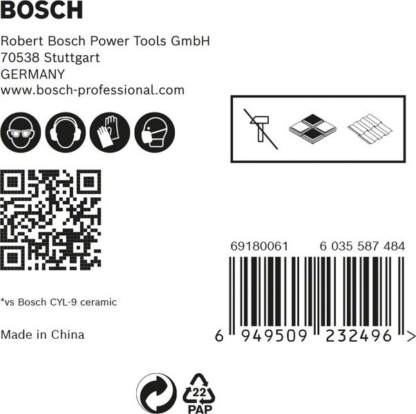 Long Life Drilling Hard Tiles! Start holes accurately with a specially-designed centering tip. As wall tiles have become larger and harder, drilling holes in them has become very demanding on a tile drill bit. Thats why Bosch has developed the EXPERT HardCeramic Drill Bit, which is capable of dry-drilling hard ceramics and lasts far longer than our benchmark drill bit for tiles. The Bosch EXPERT HEX-9 HardCeramic Drill Bit is designed for drilling ceramics and can drill holes in hard tiles without lubricant or cooling. Exceptionally durable drill bit tip with Bosch Carbide Technology.