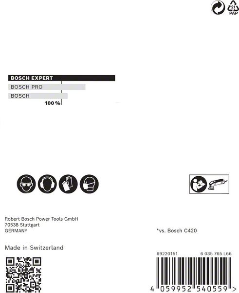 Performance Claim Text: Up to 4x better dust reduction than Bosch C420 Sandpaper