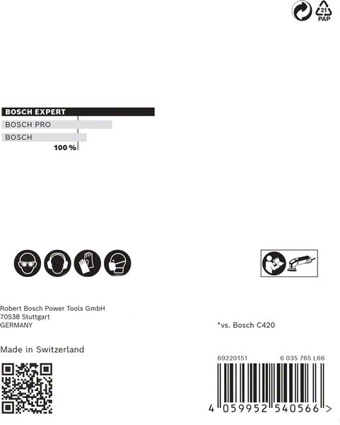 Performance Claim Text: Up to 4x better dust reduction than Bosch C420 Sandpaper