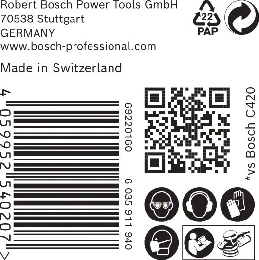 Performance Claim Text: Up to 4x better dust reduction than Bosch C420 Sandpaper