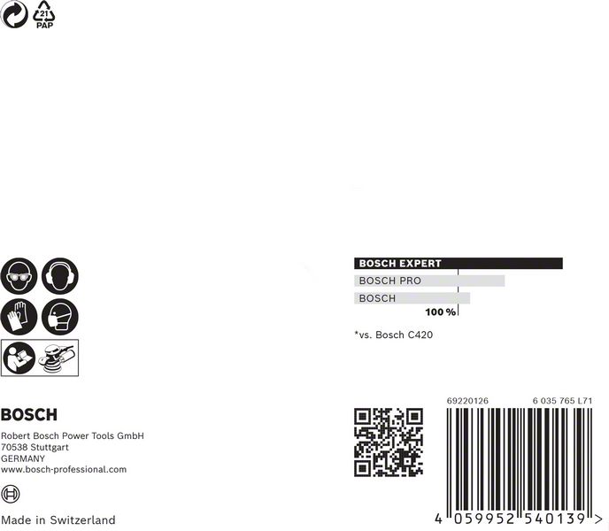 Performance Claim Text: Up to 4x better dust reduction than Bosch C420 Sandpaper