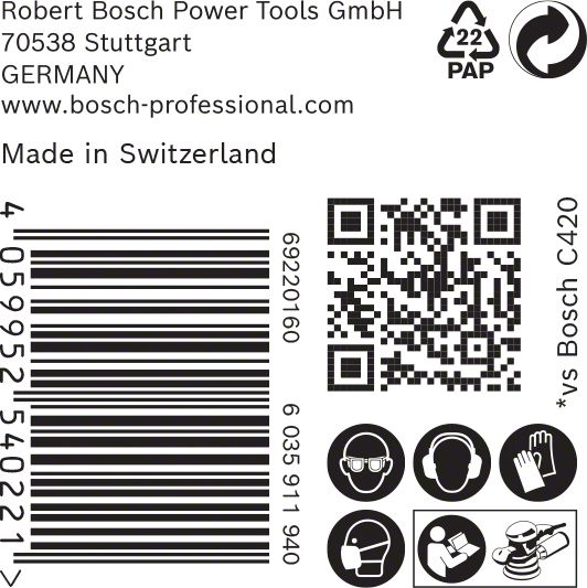 Performance Claim Text: Up to 4x better dust reduction than Bosch C420 Sandpaper