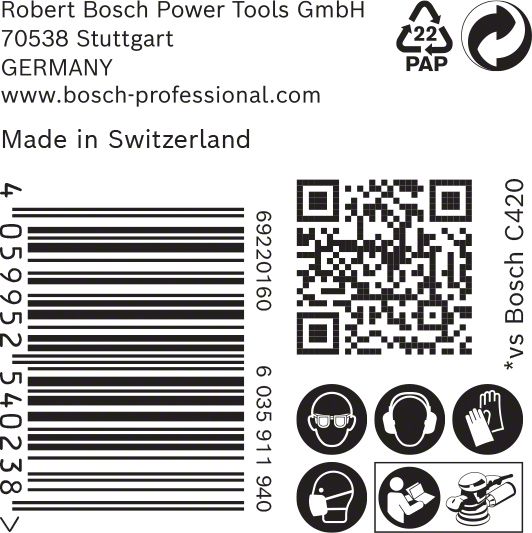Performance Claim Text: Up to 4x better dust reduction than Bosch C420 Sandpaper