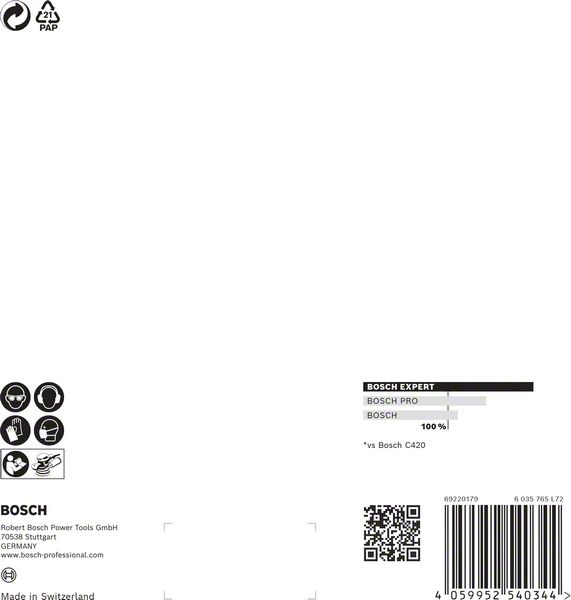 Performance Claim Text: Up to 4x better dust reduction than Bosch C420 Sandpaper
