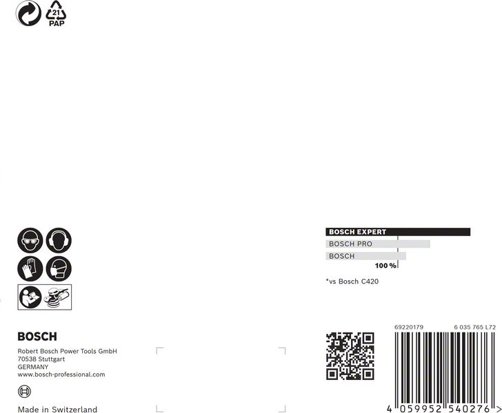 Performance Claim Text: Up to 4x better dust reduction than Bosch C420 Sandpaper