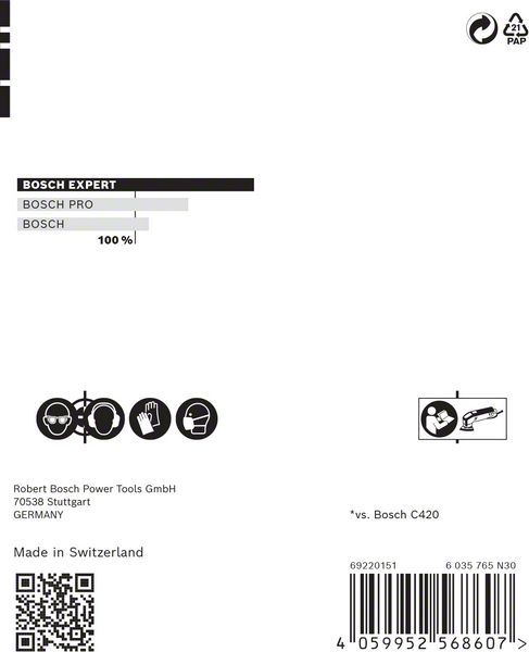 Performance Claim Text: Up to 4x better dust reduction than Bosch C420 Sandpaper