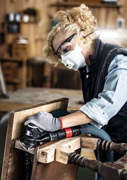 Advanced Dust Reduction Sanding Wood, Paint and Drywall! Dust is sucked through Open Net Structure. Dust is the big drawback of sanding. It clogs your sandpaper, rendering it ineffective. It coats everything in the room and permeates the house. Thats why weve come up with Bosch Particle Control technology and taken dust reduction to a new level. Reducing dust when sanding is not easy, but we’ve found a solution. This Bosch EXPERT M480 Sanding Net uses our Particle Control technology to keep the dust level to a minimum. Highly efficient dust removal with Bosch Particle Control.