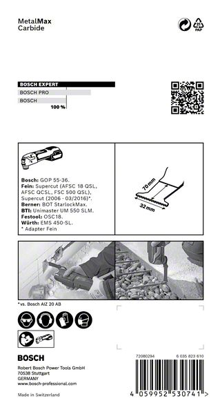 Robert Bosch Power Tools GmbH EXPERT MetalMax MAII 32 AIT Multitool Blade 70 x 32 mm. For oscillating multitools
