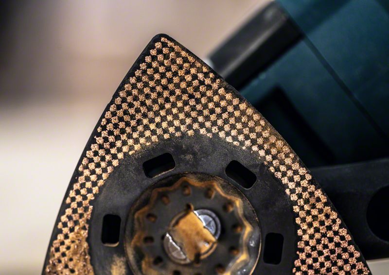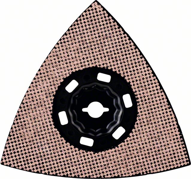 Long Life Sanding Multi Material! Delta shape reaches corners while sanding efficiently. Small but tough sanding jobs to remove old material and prepare surfaces for working can be almost impossible with conventional sanders or by hand. Even if you can reach the surface, these jobs destroy sandpaper. With the EXPERT Sanding Plate however, you can reach corners and sand difficult materials with your oscillating multitool. The coarse, open grains of the RT2 (grit size 20) are best for removing mortar behind tiles; removing carpet adhesive; or rough shaping of wood. The RT4 (grit size 40) is best for removing thick paint but can also tackle mortar and glue if required. The RT6 (grit size 60) is the paint specialist, while the RT10 (grit size 100) is ideal for sanding and preparing clean wood surfaces. Exceptional durability is built in with Bosch Carbide Technology.