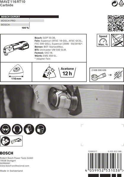 Robert Bosch Power Tools GmbH EXPERT Sanding Plate MAVZ 116 RT10 Multitool Blade 116 mm. For oscillating multitools