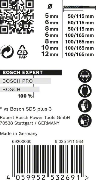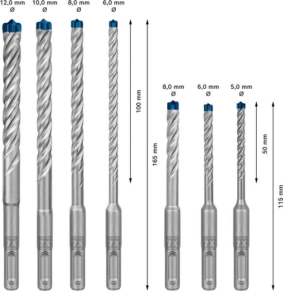 Robert Bosch Power Tools GmbH EXPERT SDS plus-7X Hammer Drill Bit Set 5/6/6/8/8/10/12 mm 7-pc. For rotary hammer drills