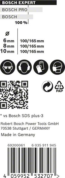 Robert Bosch Power Tools GmbH EXPERT SDS plus-7X Hammer Drill Bit Set 6/8/10 mm 3-pc. For rotary hammer drills