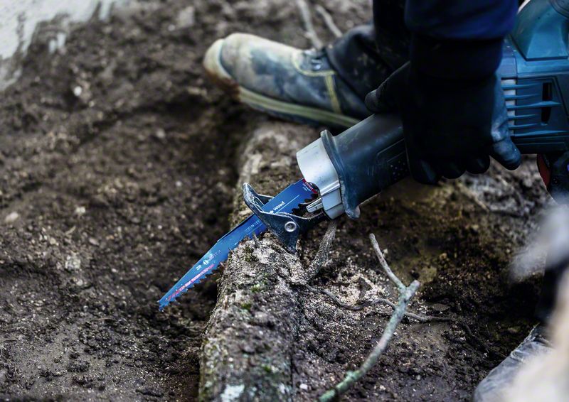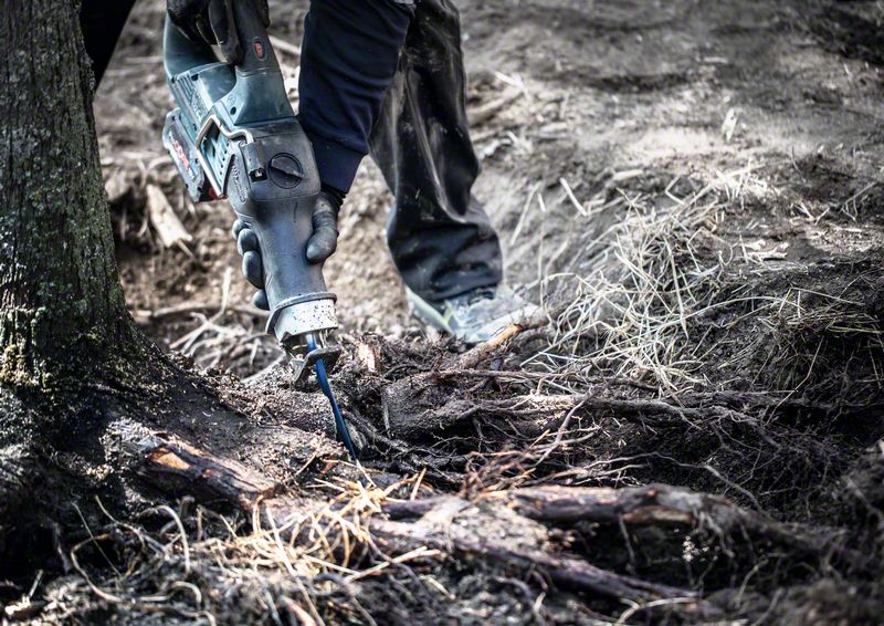 Long Life Cutting Tough Wood! Tapered tip reaches deeper into tight spaces. Theres softwood, theres hardwood, and then there are those tough woods that destroy saw blades and make your life miserable. Wet lumber, thick pressure-treated planks and knotted living roots or thick branches fall into this awkward category – and the EXPERT Tough Wood can cut them all. Landscapers, carpenters and builders in particular will appreciate the Bosch EXPERT Tough Wood Reciprocating Saw Blade. It is so tough and long lasting that you can cut roots to remove trees and hedges without worrying about the soil and stones tangled up within them. Exceptional durability is built in with Bosch Carbide Technology.