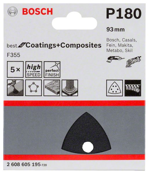 Robert Bosch Power Tools GmbH F355 sanding sheet, pack of 5. For delta sanders