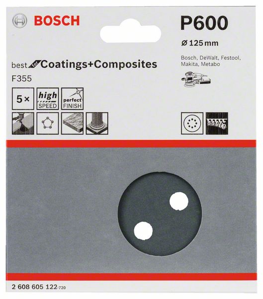 Robert Bosch Power Tools GmbH F355 sanding sheet, pack of 5. For random orbital sanders