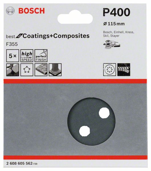 Robert Bosch Power Tools GmbH F355 sanding sheet, pack of 5. For random orbital sanders