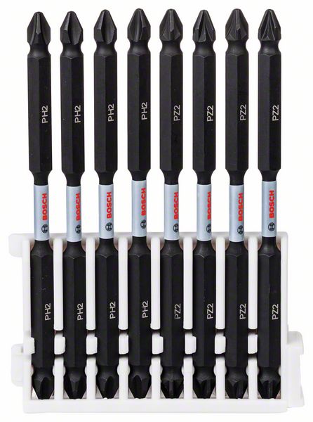 The Double Ended Screwdriver Bit is highly robust and ideal for heavy duty applications, even withstanding the high power of impact drivers. The bit features an extended torsion zone that makes it extremely sturdy for long-lasting work. S2 Modified Steel and an optimised heat-treatment process provide extra-tough endurance for high performance, including in plant installations or heavy industrial work. This bit is part of the Bosch Pick and Click system, which enables individually buildable accessory sets for fully customisable bit collections. Click-fitting slots perfectly secure individually purchased packs for a personalised collection and the easy replacement of old packs.