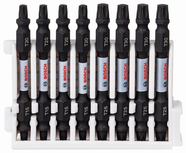 The Double Ended Screwdriver Bit is highly robust and ideal for heavy duty applications, even withstanding the high power of impact drivers. The bit features an extended torsion zone that makes it extremely sturdy for long-lasting work. S2 Modified Steel and an optimised heat-treatment process provide extra-tough endurance for high performance, including in plant installations or heavy industrial work. This bit is part of the Bosch Pick and Click system, which enables individually buildable accessory sets for fully customisable bit collections. Click-fitting slots perfectly secure individually purchased packs for a personalised collection and the easy replacement of old packs.